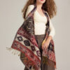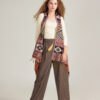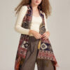 Chaleco grecas maya confeccionado en telar con detalles bordados a mano en hilo de algodón. En color rojo a contraste con azul y beige, lazada ajustable en parte frontal. Prenda 100% artesanal.