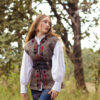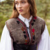 Chaleco color visón con bordados en forma de hojas en todos los bordes con tonalidades a contraste. Una prenda típica de la región de San Juan Chamula.