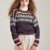 Jersey cuello redondo color gris oscuro, de lana con alpaca y algodón, calidad suave ( no pica ). Con estampado de grecas y alpacas en tonalidades otoñales a contraste. Este modelo es UNISEX.