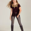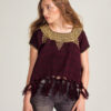 Top rayas negro con burdeos. Con bordados geométricos con técnica punto de cruz en parte frontal y desflecado en bajos. Una prenda 100% artesanal.