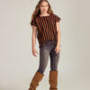 Top rayas bicolor terracota y negro. Confeccionado en telar de cintura con desflecado en bajos, detalles tejidos en estambre de algodón con forma circular. Una prenda 100% artesanal, típica chiapaneca.