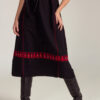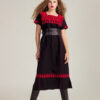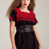 Vestido largo midi en color negro, confeccionado 100% en telar de cintura. Con bordados en forma de grecas en babero y bordes con colores a contraste. Una pieza típica de la región de Zinacantan. No incluye cinturón.